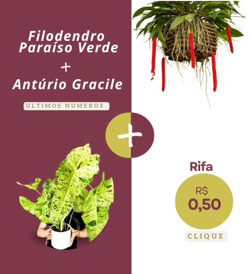 🔹 Prêmio: 1 Filodendro Paraíso Verde (raríssimo) + 1 Antúrio Gracile🌱