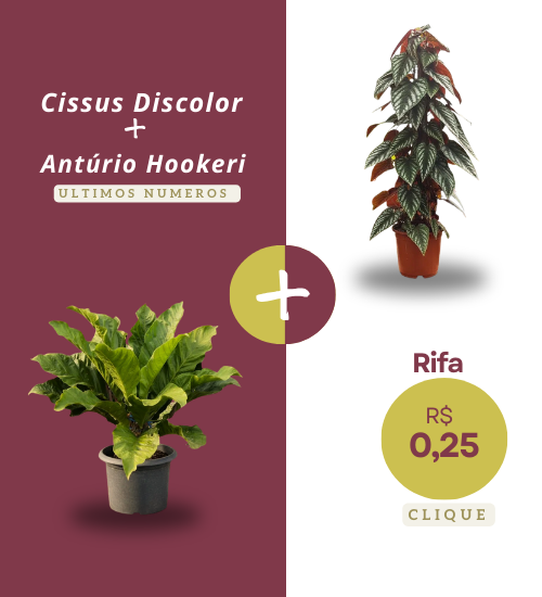 🔹 Prêmio: 1 Cissus discolor (exótica) + 1 Antúrio Hookeri 🌱